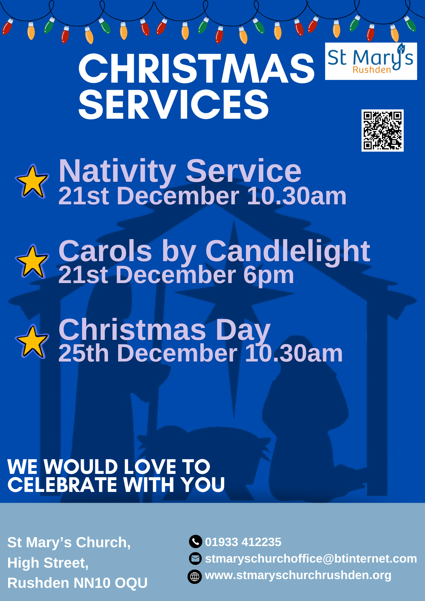 St Mary’s is a place where everyone is welcome. We are a church of people of all ages and backgrounds, with a desire to know Jesus, to grow in our faith, and to serve our local community of Rushden.